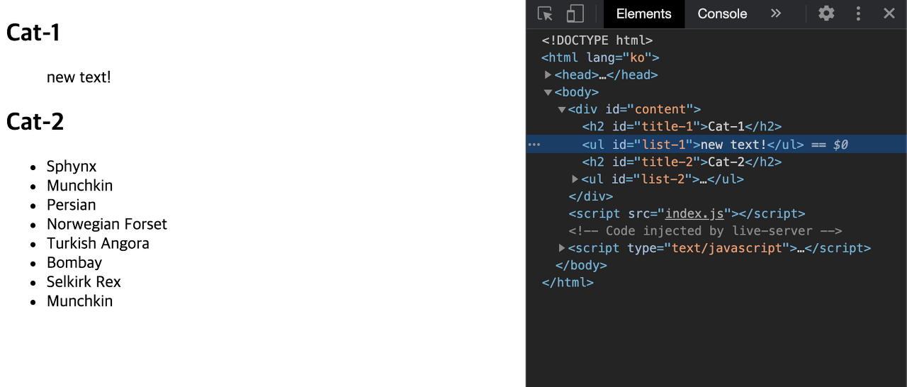 - 새로운 값을 할당하면 innerHTML과 마찬가지로 내부의 값을 완전히 새로운 값으로 교체 합니다.