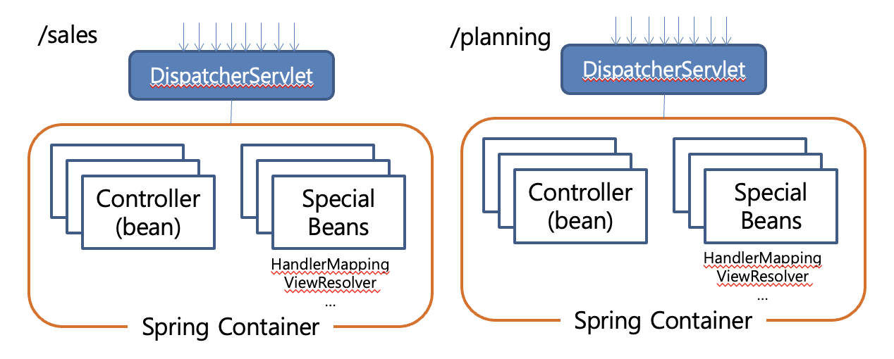 – DispatcherServlet에 의해 생성된 Bean은 ContextLoaderListener에 의해 생성된 Bean을 참조할 수 있습니다.