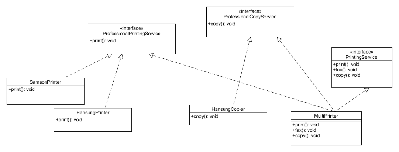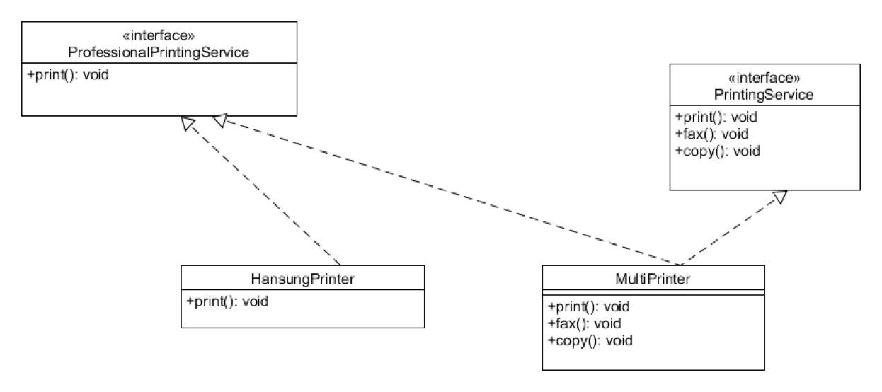 인터페이스를 클라이언트에 특화되도록 분리시키라는 설계 원칙 (fat interface -> small interface)
