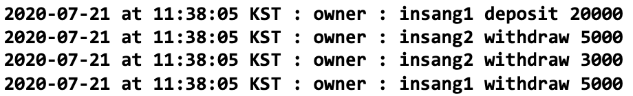 Account acct2 = new Account("insang2", 2000000); acct2.setMyLogger(logger);