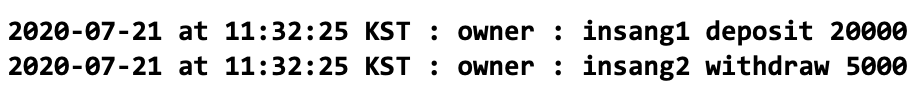 myLogger.log("owner" + " : " +this.getOwner() + " withdraw " + money);